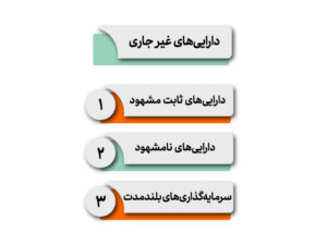 داراییها: چیزهایی که شرکت دارد (مثل پول نقد، موجودی کالا، ساختمان، وسایل، حساب بانکی و…)